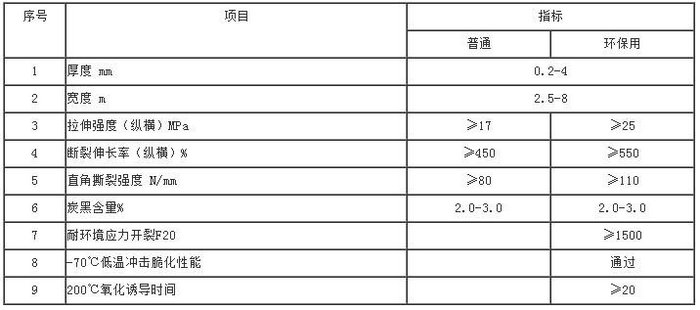 HDPE土工膜技術(shù)指標(biāo)